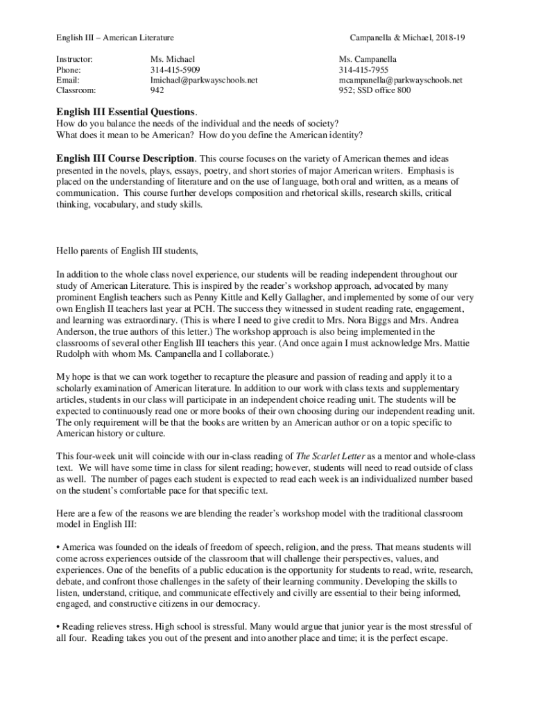 Get the free English-III.pdf - English III (American Literature) Course OutlineMs ...