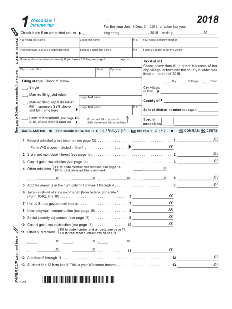 1Wisconsin income Taylor the year Jan. 1Dec. 31, 2018, or other tax Laredo NOT Staples page 5 before assembling return, 2018endingbeginningCheck here if an amended return Legal first name. I. Your