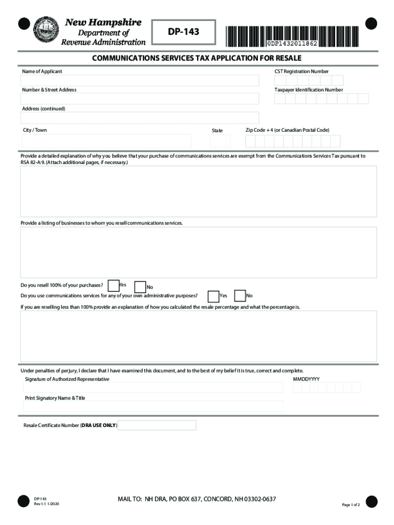 DP143!\”#$\” COMMUNICATIONS SERVICES TAX APPLICATION FOR RESALE Name of Applicant CST Registration NumberNumber & Street AddressTaxpayer Identification NumberAddress (continued)City / TownStateZip