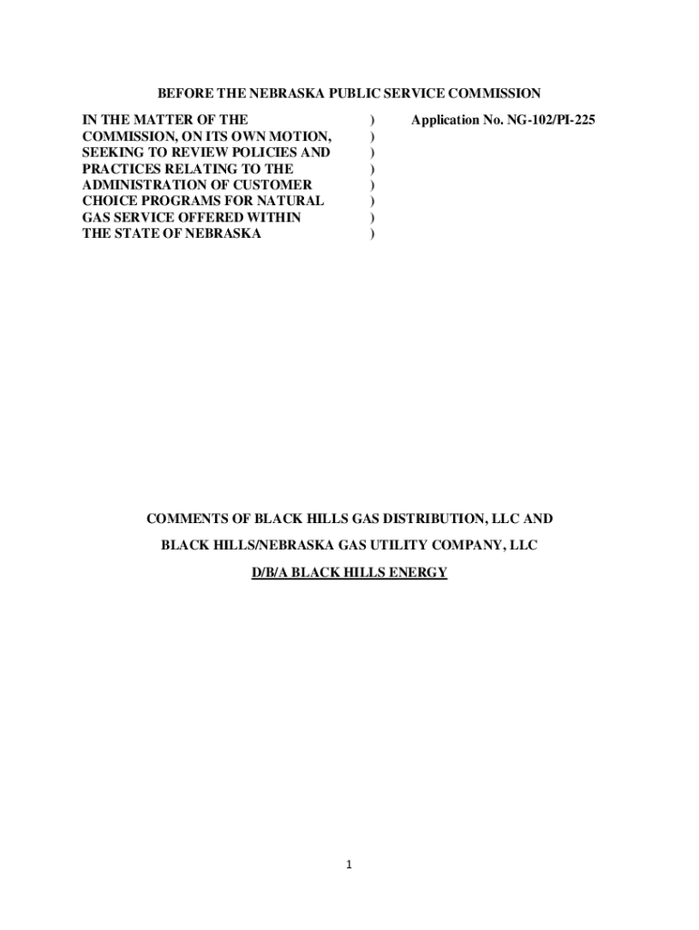BEFORE THE NEBRASKA PUBLIC SERVICE COMMISSION IN THE MATTER OF THE COMMISSION, ON ITS OWN MOTION, SEEKING TO REVIEW POLICIES AND PRACTICES RELATING TO THE ADMINISTRATION OF CUSTOMER CHOICE PROGRAMS