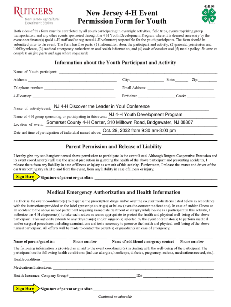 Get the free NJ 4-H Discover the Leader in You Conference Information - nj4h rutgers