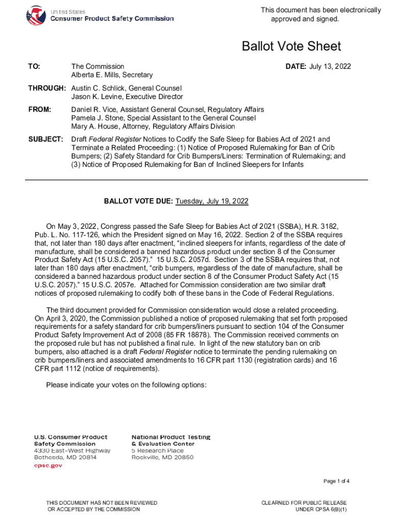 This document has been electronically approved and signed. Ballot Vote Sheet TO:DATE: July 13, 2022The Commission Alberta E. Mills, SecretaryTHROUGH: Austin C. Schick, General Counsel Jason K. Levine,