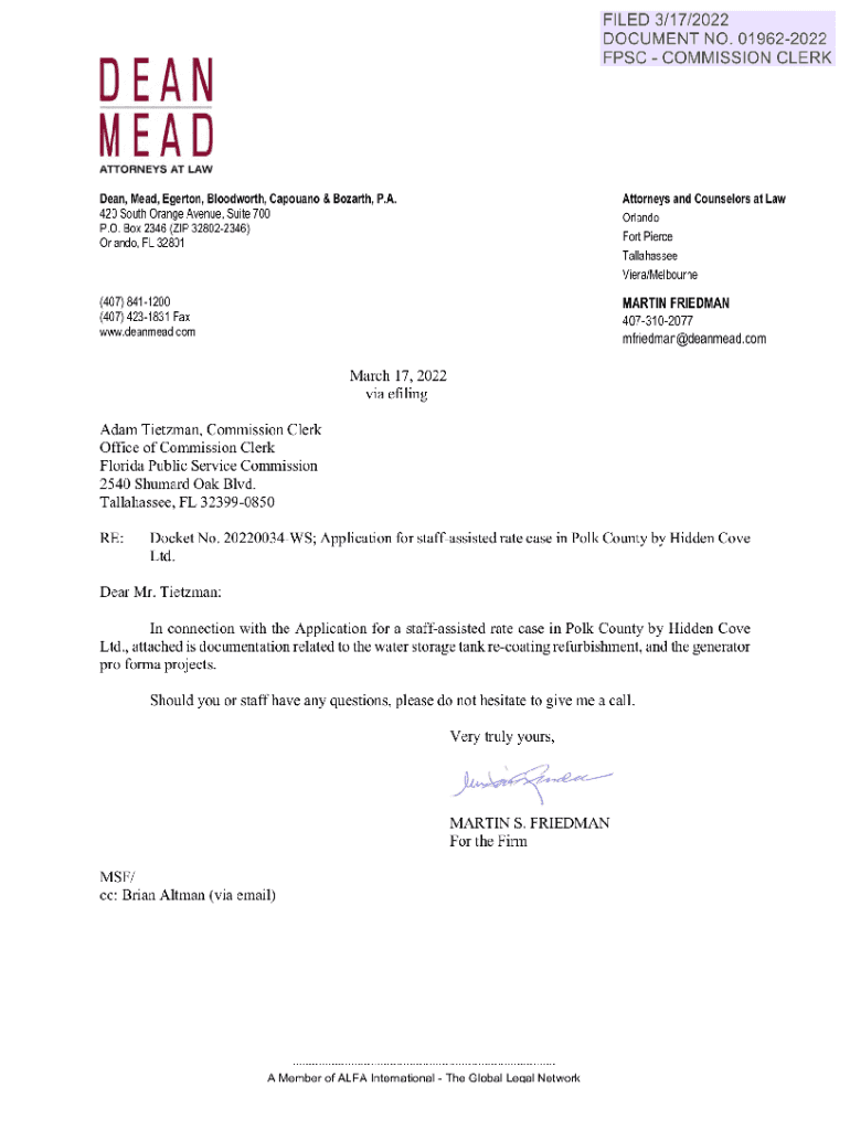 ATTORNEYS AT LAW Dean, Mead, Edgerton, Blood worth, Capone & Mozart, P.A.