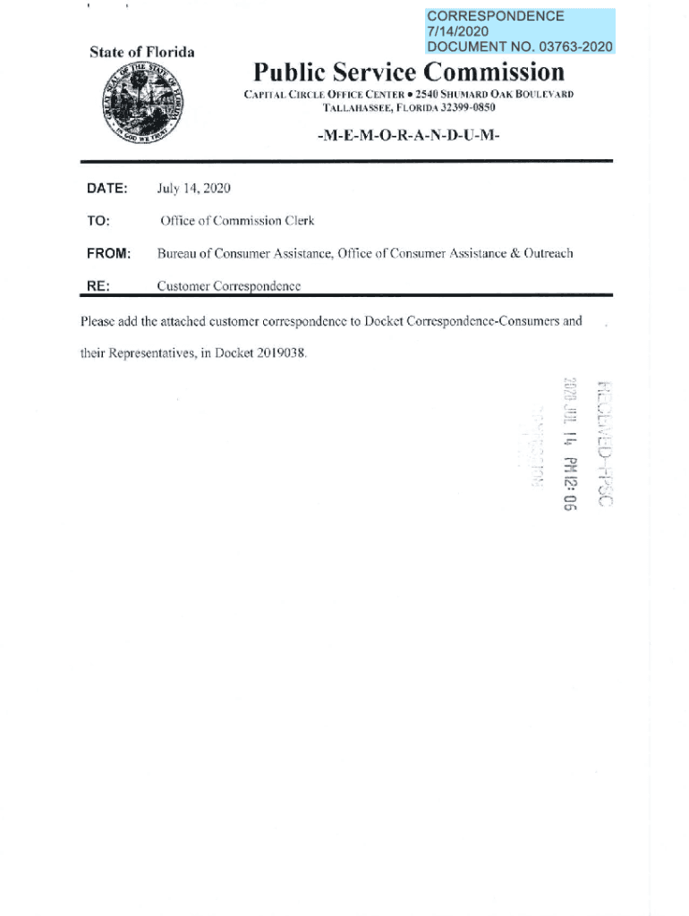 DOCUMENT NO. 037632020State of FloridaPublic Service Commission