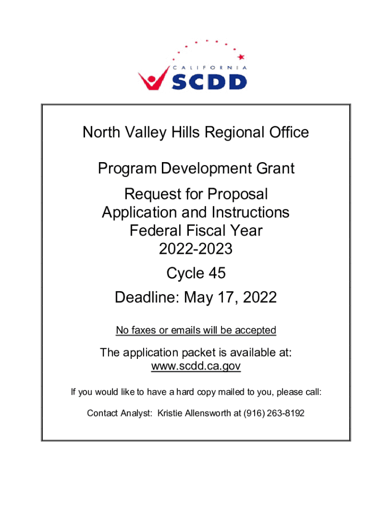 North Valley Hills Regional Office Program Development Grant Requests for Proposal Application and Instructions Federal Fiscal Year 20222023 Cycle 45 Deadline: May 17, 2022, No faxes or emails will