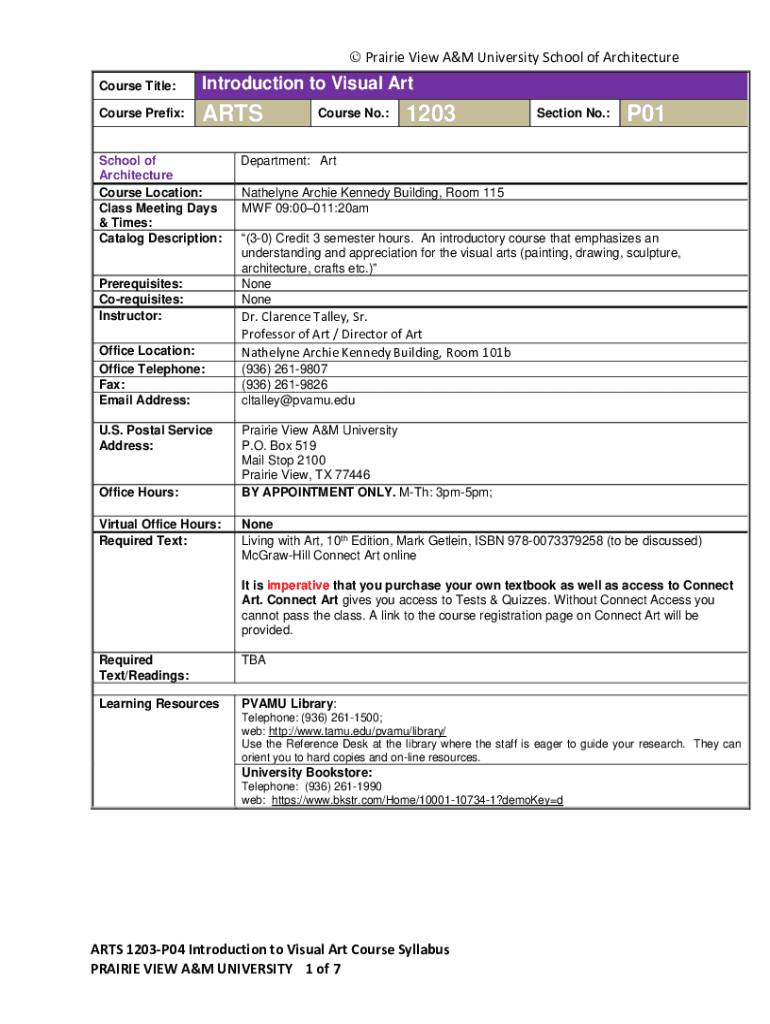 Get the free Introduction to Visual Art Course Syllabus