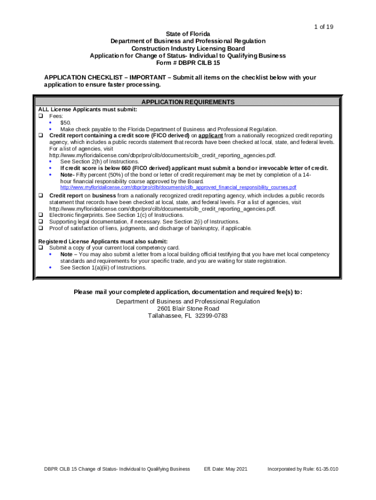 Instructions for the Florida Business & Professional RegulationState of Florida form