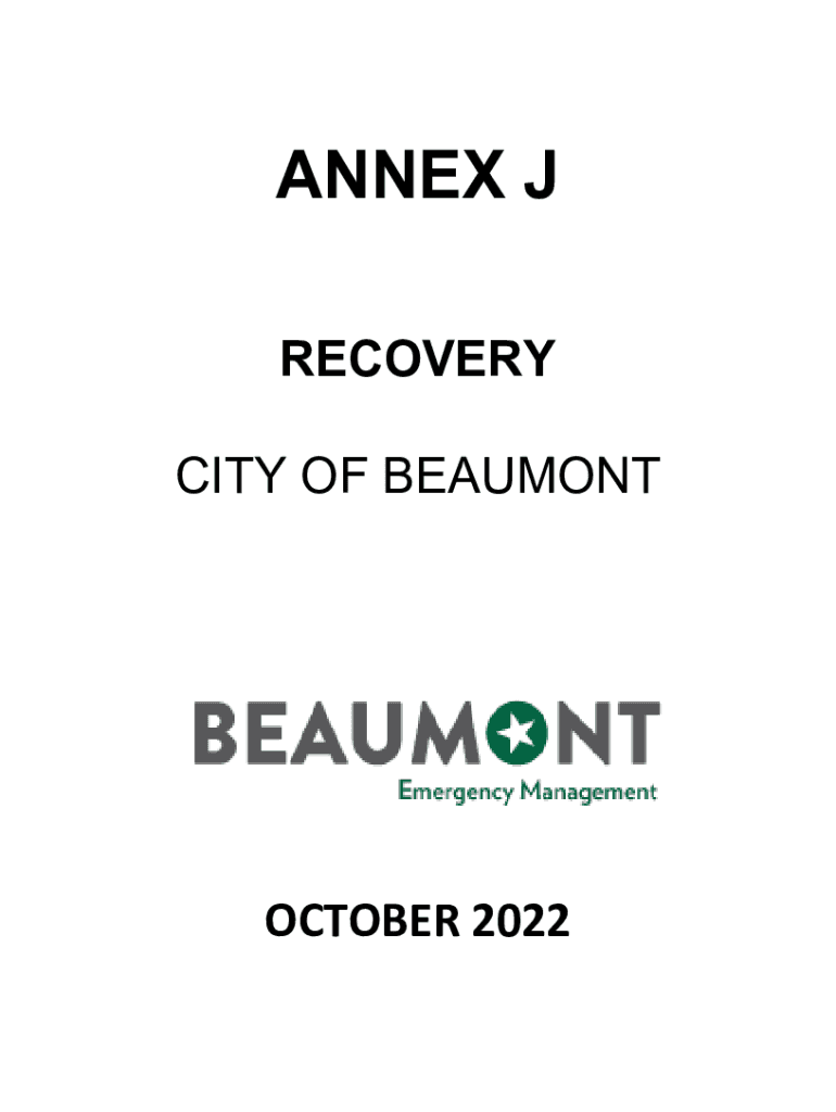 ANNEX J RECOVERY CITY OF BEAUMONTOCTOBER 2022RECORD OF CHANGESAnnex J Recovery Reviewed by: Tim Ocnaschek EMC Shaheena Nobles Deputy EMC Boyd Meier Building Official Bart Bartkowiak Public Works Director