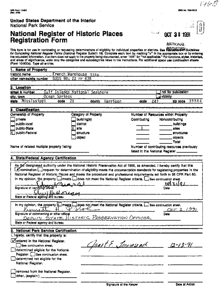 NP8 Form 10400 (RV.8)0 MB No. 10244019United States Department of the Interior National Park ServiceNational Register of Historic Places Registration FormOCT3J199IThis form is for use in nominating