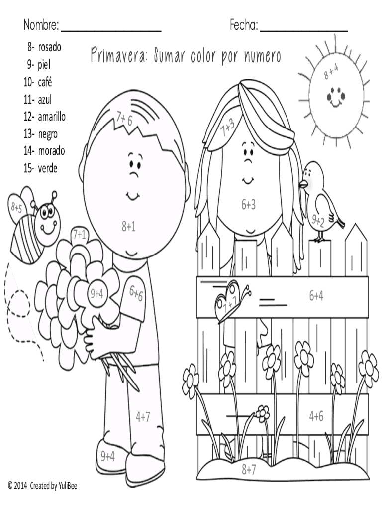 Hombre: ___ 8 rosadoPrimavera: Sugar 9 pail 10 CAF 11 Azul 12 Amarillo 13 Afro-American 14 dorado 15 verdeFecha: ___color POR numero6+3 8+17+19+46+44+64+7 9+4 2014Created by YuliBee8+7Name: ___ 8