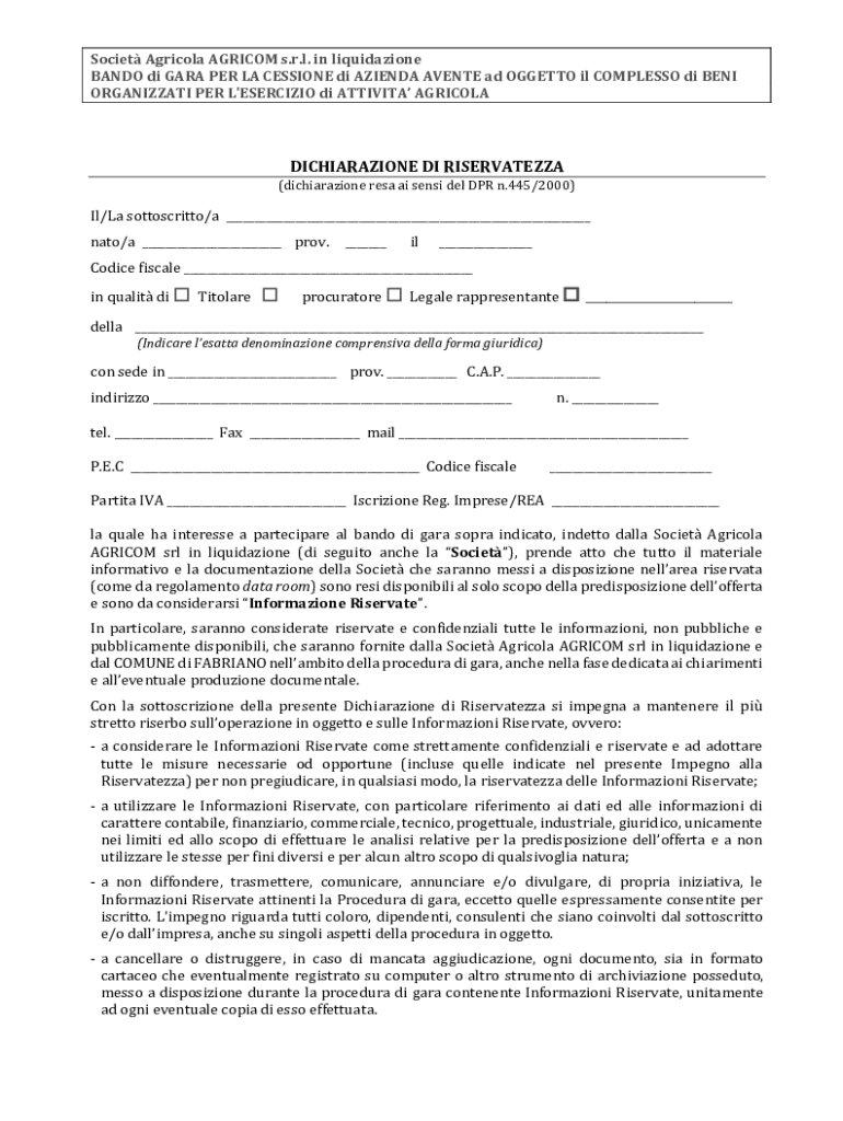 ORGANIZATION PER L\'ESERCIZIO DI ACTIVITY AGRICOLADICHIARAZIONE DI RISERVATEZZA