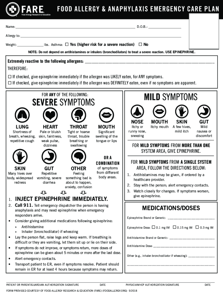 Name:___ D.O.B.:___ Allergy to:___ Weight:___ lbs. Asthma:PLACE PICTURE HERE Yes (higher risk for a severe reaction) None: Do not depend on antihistamines or inhalers (bronchodilators) to treat a