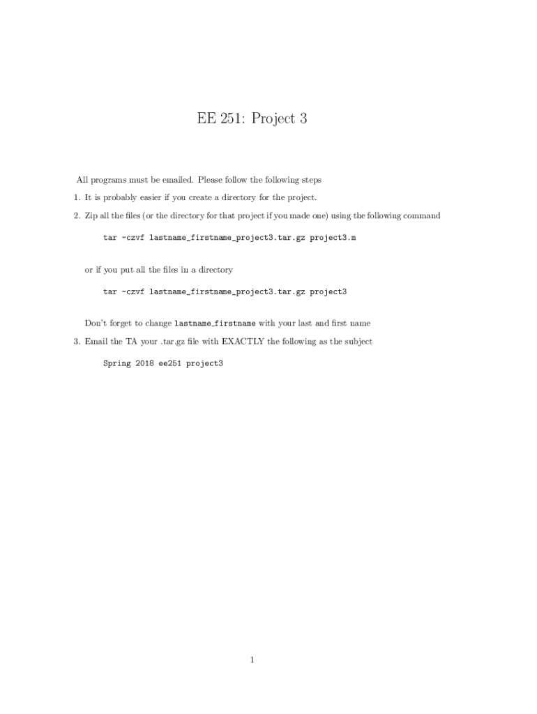 EE 251: Project 3All programs must be emailed. Please follow the following steps 1. It is probably easier if you create a directory for the project. 2. Zip all the files (or the directory for that