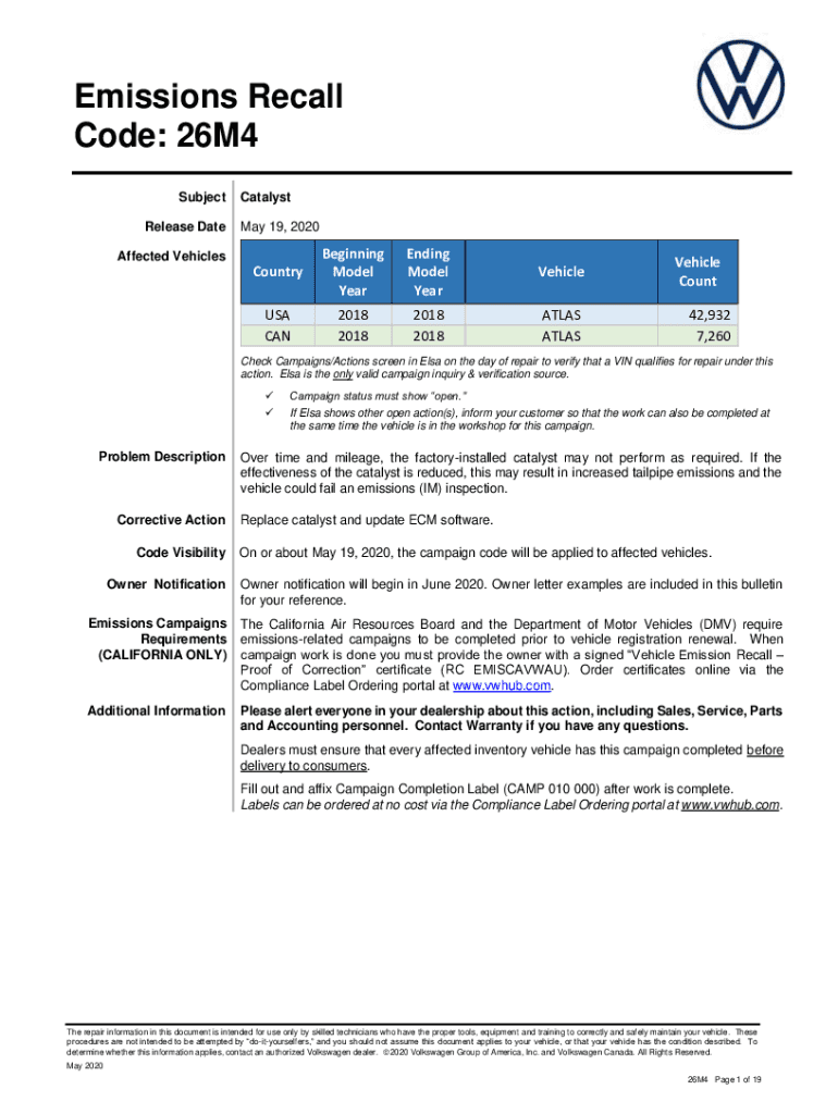 Anyone who has received an emissions recall notice with code 26m4 from the manufacturer.