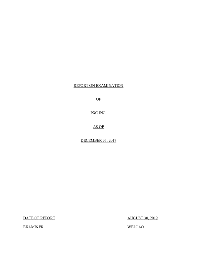 REPORT ON EXAMINATION OF PC INC. AS OF DECEMBER 31, 2017DATE OF REPORTAUGUST 30, 2019EXAMINERWEI NOTABLE OF CONTENTS IMAGE NO.1. Scope of examination22. Description of Company2A. Article of incorporation