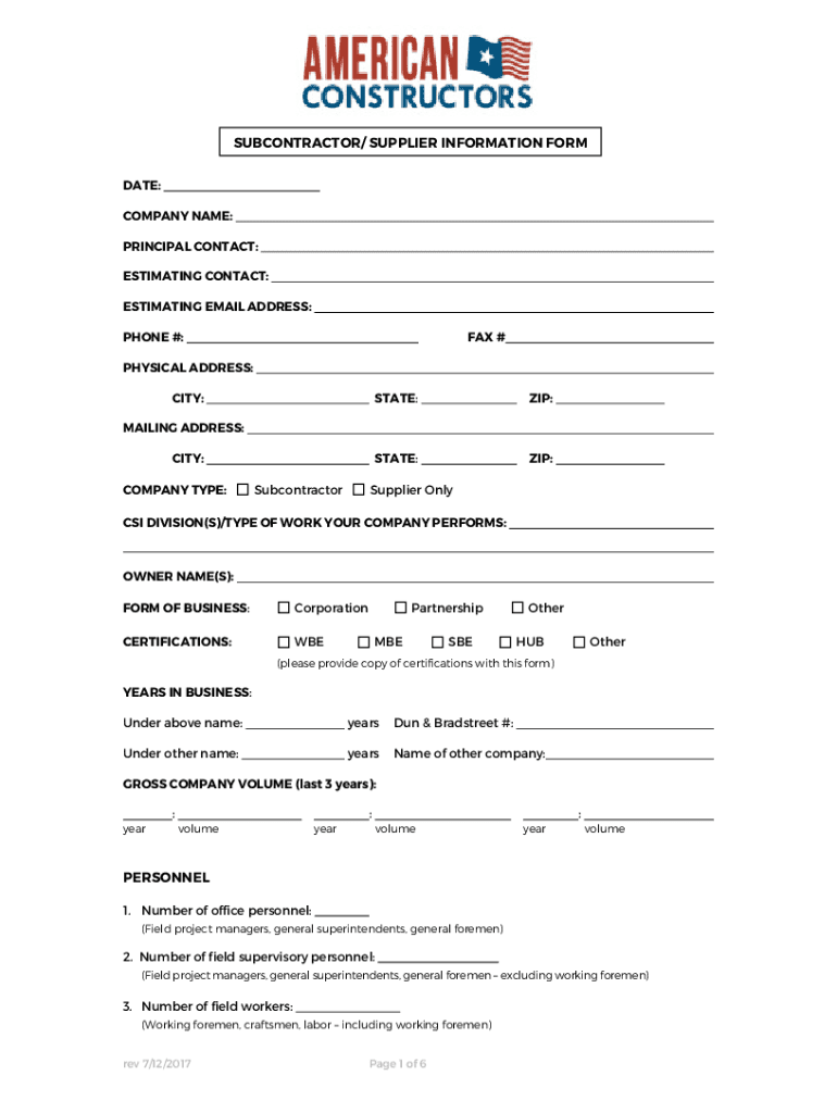 Contractors and project managers are typically required to file the docplayernet6630897-subcontractor-suppliersubcontractor supplier information form.