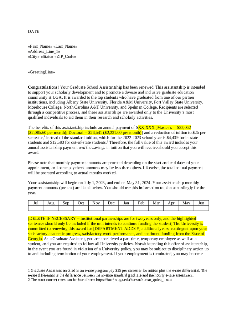 The UGA Graduate Application Management - grad uga is a document that can be completed and signed for specific purpose. In that case, it is furnished to the relevant addressee in order to provide specific information and data. The completion and signing can be done in hard copy or using an appropriate tool like PDFfiller. These applications help to send in any PDF or Word file online. It also allows you to customize it according to your requirements and put a legal electronic signature. Once finished, the user sends the UGA Graduate Application Management - grad uga to the respective recipient or several ones by email and even fax. PDFfiller has got a feature and options that make your template printable. It provides a number of settings for printing out. It does no matter how you will file a document - in hard copy or electronically - it will always look neat and organized. To not to create a new document from scratch over and over, make the original document into a template. After that, you will have a rewritable sample.