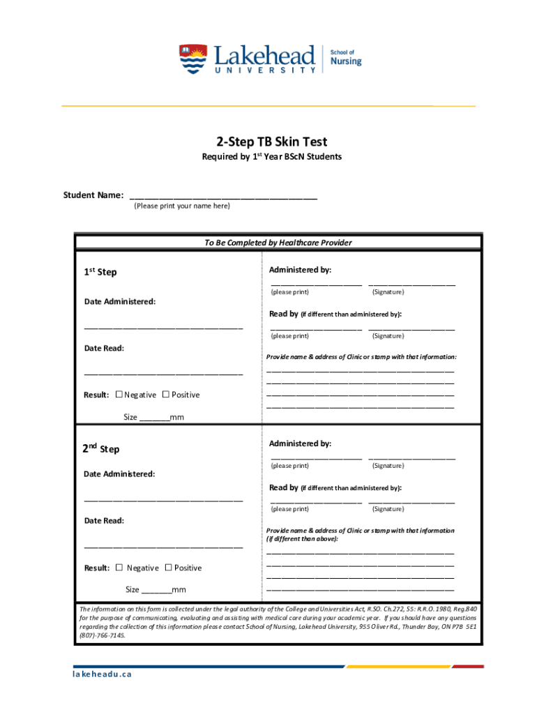 2Step TB Skin Test Required by 1st Year BCN StudentsStudent Name: ___ (Please print your name here)To Be Completed by Healthcare Provider Administered by:1st Step___ ___ (please print)(Signature)Date