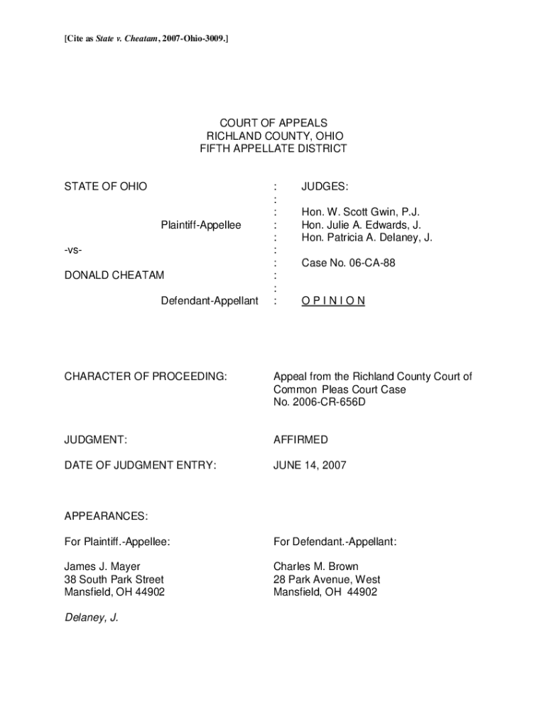 [Cite as State v. Cheat am, 2007Ohio3009.]COURT OF APPEALS RICHLAND COUNTY, OHIO FIFTH APPELLATE DISTRICTSTATE OF OHIOPlaintiffAppellee Donald CHEAT AM DefendantAppellant: : : : : : : : : :JUDGES: