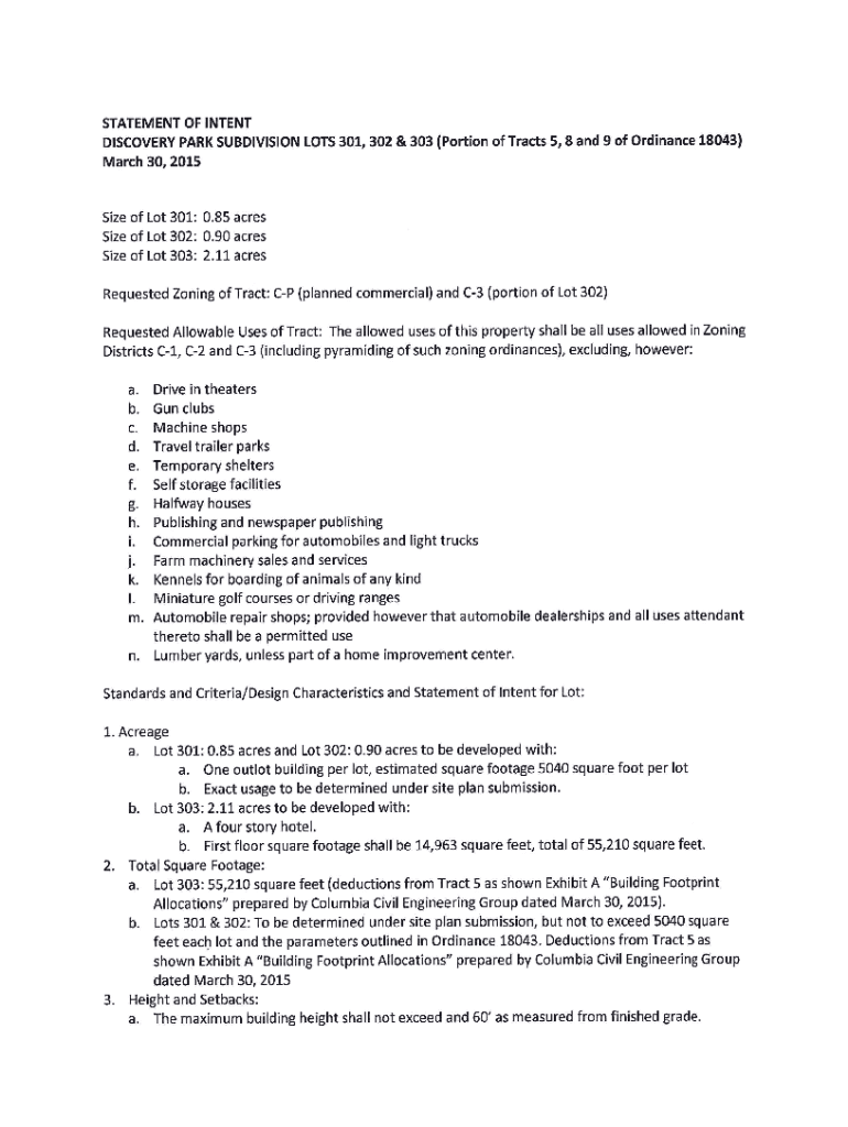 3301 Berry wood Dr., Suite 103 Columbia, MO 65201(pH) 5739997821Project Number: 1120031 Project: Discovery Date: 3/30/15Impervious Area Allocations (Basis from Development Agreement Ordinance 018043)Tract
