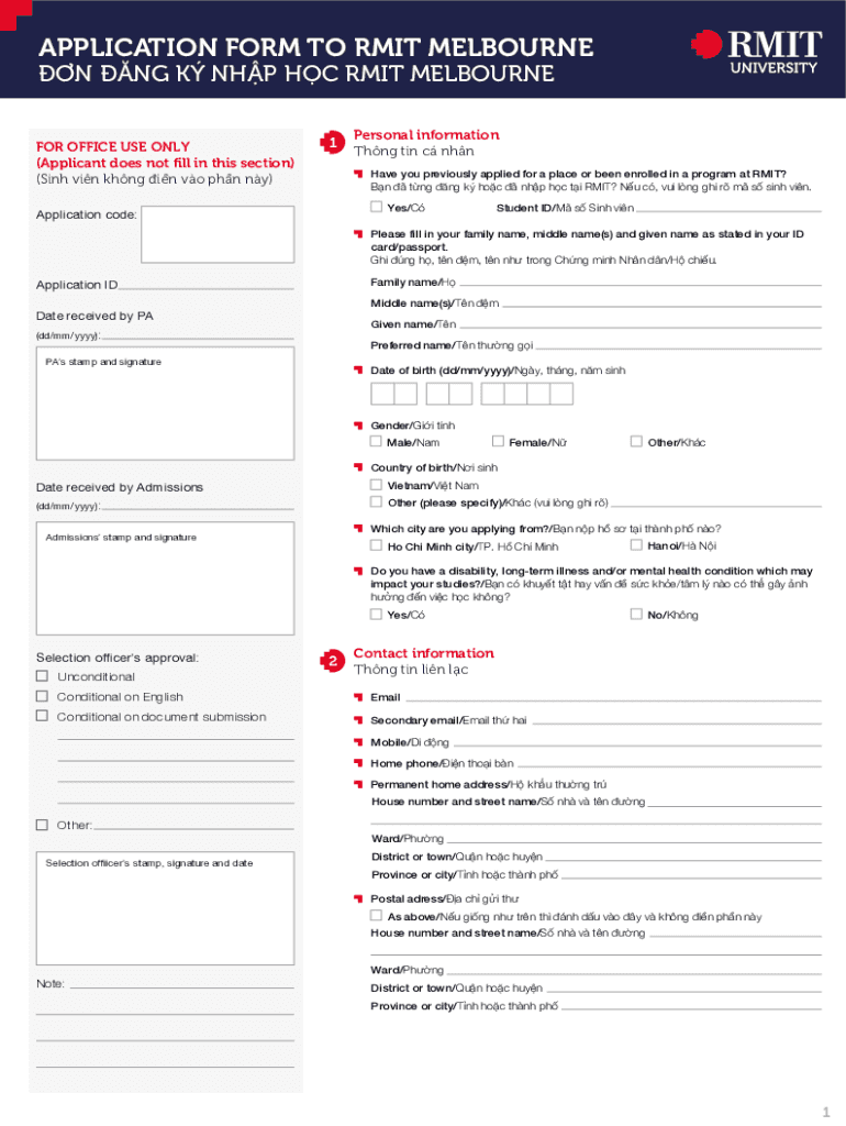 Any individual who wishes to be considered for admission to a program at RMIT University is required to file the app form.