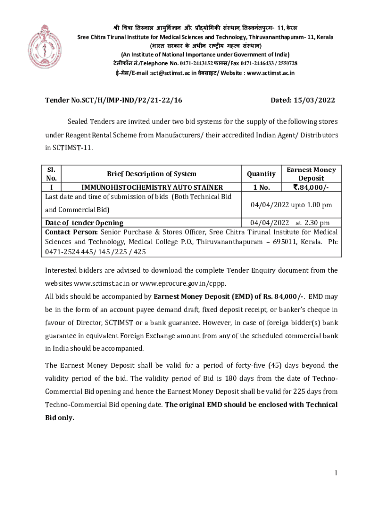 Sree Chitra Tirunal Institute forms can be filled out online or submitted in person at the institute.