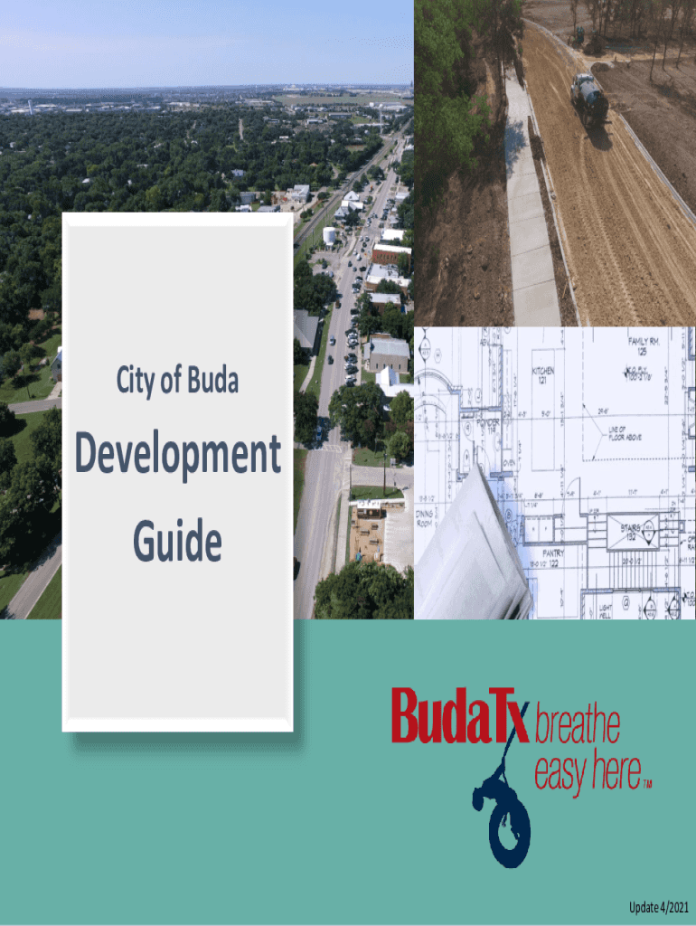 City of BudaDevelopment Guide1 Update 4/2021Introduction This Development Guide (The Guide) is provided to assist applicants in planning and navigating through the development review and permitting