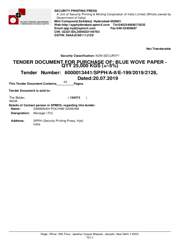 Get the free TENDER DOCUMENT FOR PURCHASE OF: BLUE WOVE PAPER QTY 25,000 KGS (+/-5%)