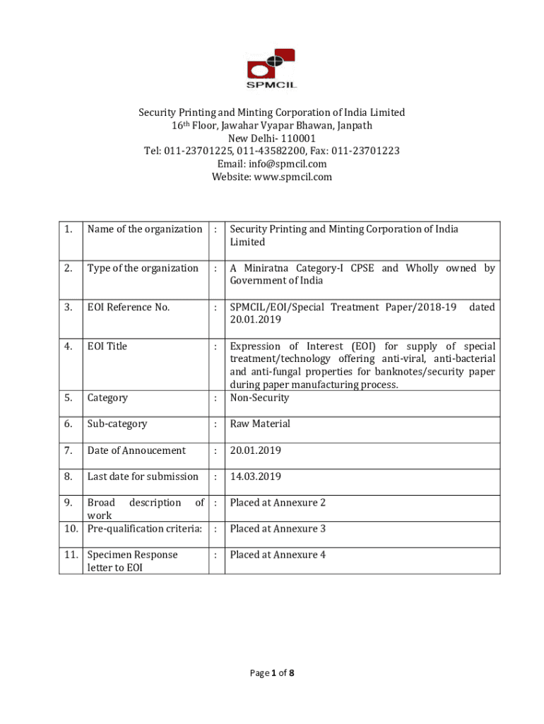 Get the free spmcil.com UploadDocument EOIBioguard as perth Floor, Jawahar Vyapar Bhawan, Janpath...