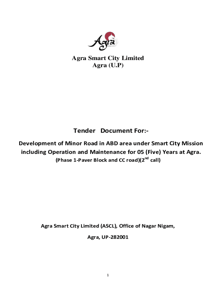Agra Smart City Limited Agra (U. P)Tender Document For:Development of Minor Road in ABD area under Smart City Mission including Operation and Maintenance for 05 (Five) Years at Agra. (Phase 1Paver