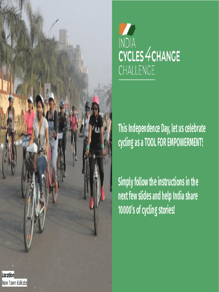 This Independence Day, let us celebrate cycling as a TOOL FOR EMPOWERMENT! Simply follow the instructions in the next few slides and help India share 10000s of cycling stories! Location New Town Folktales