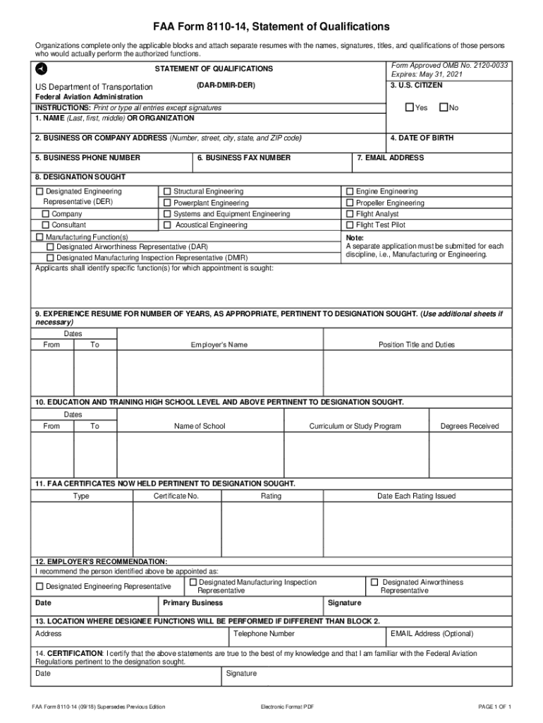 Get the free FAA Form 8110-14 - Statement of Qualifications