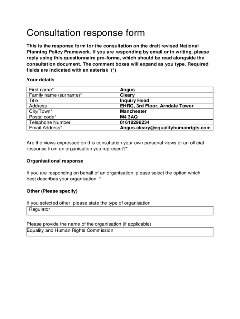 Consultation response form This is the response form for the consultation on the draft revised National Planning Policy Framework. If you are responding by email or in writing, please reply using