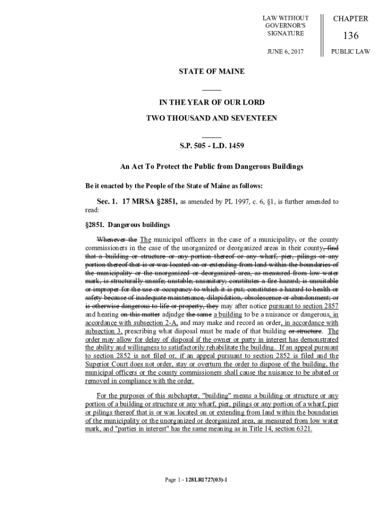 Get the free legislature.maine.gov legis billsLAW WITHOUT CHAPTER GOVERNOR'S SIGNATURE ... - Main...
