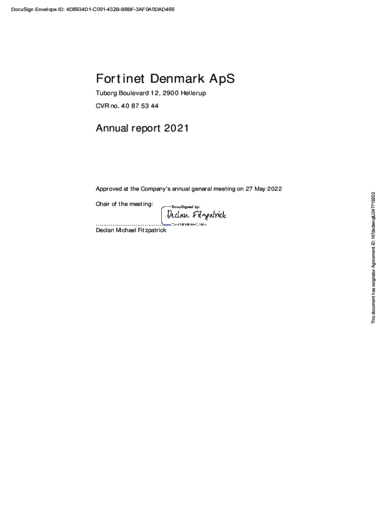 DocuSign Envelope ID: 4D8934D1C091432BB8BF3AF0A0DAD466Fort net Denmark APS Tub org Boulevard 12, 2900 Heller up CVR no. 40 87 53 44Approved at the Company\'s annual general meeting on 27 May 2022