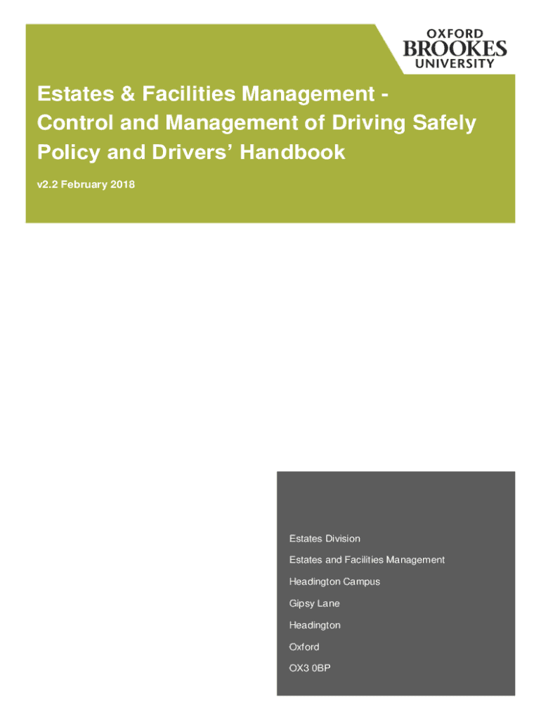 Estates & Facilities Management Control and Management of Driving Safely Policy and Drivers Handbook v2.2 February 2018Estates Division Estates and Facilities Management Heading ton Campus Gypsy Lane
