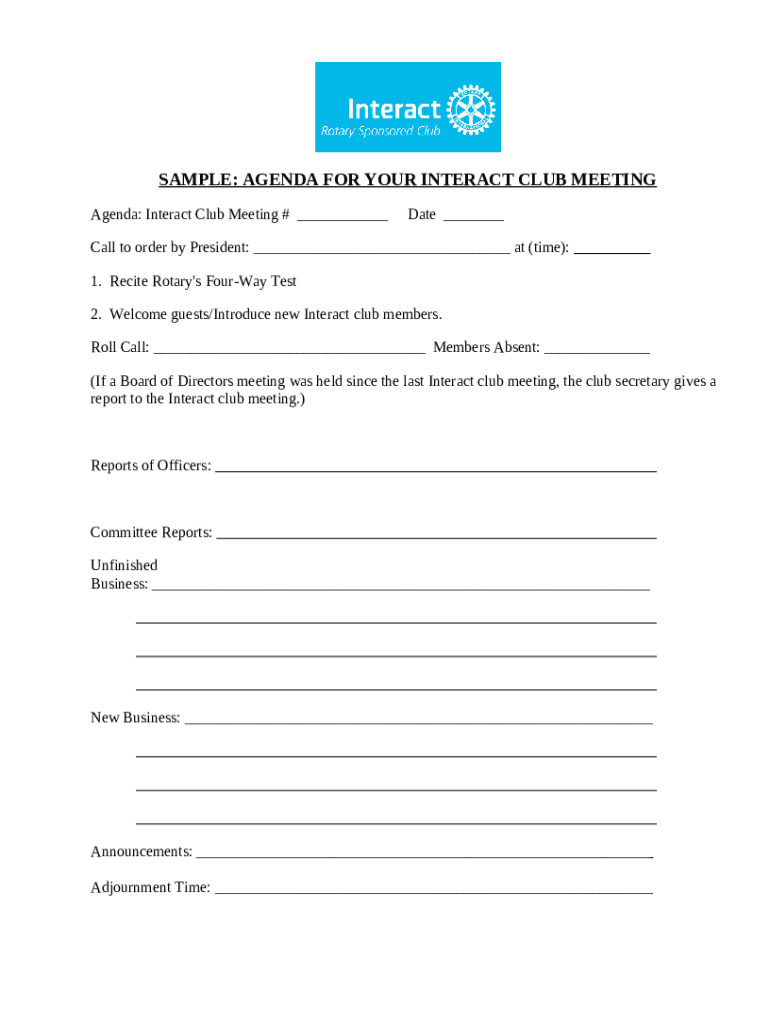 Template Sample Rotary Meeting Agendas to get your Club Organized - MoneyMinder instructions