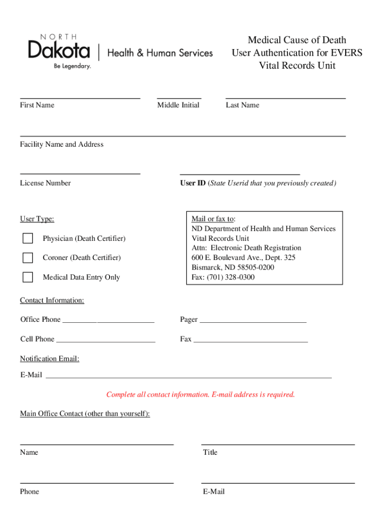 Medical Cause of Death User Authentication for EVERY Vital Records Unionist NameMiddle Initially Amenability Name and AddressLicense Numbers ID (State Use rid that you previously created)User Type:
