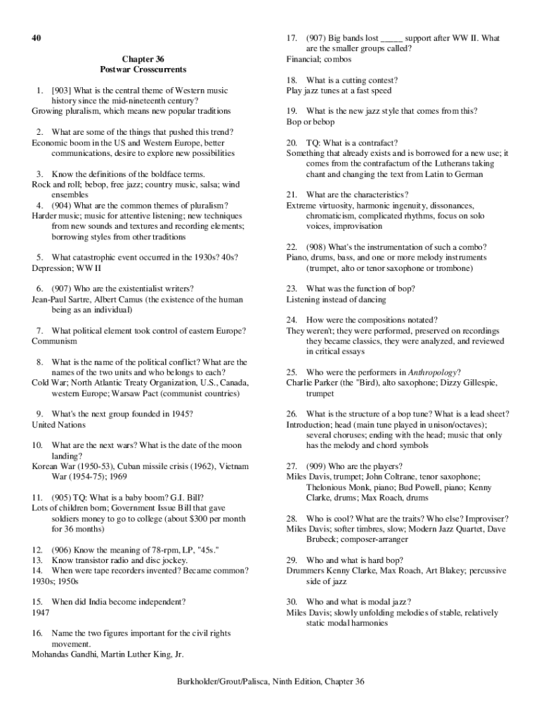 4017. Chapter 36 Postwar Crosscurrents1. [903] What is the central theme of Western music history since the midnineteenth century? Growing pluralism, which means new popular traditions 2. What are