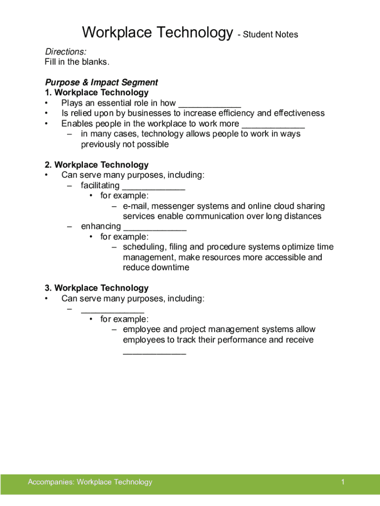 Get the free notes - Workplace Technology - Student Notes Directions: Fill in the ...