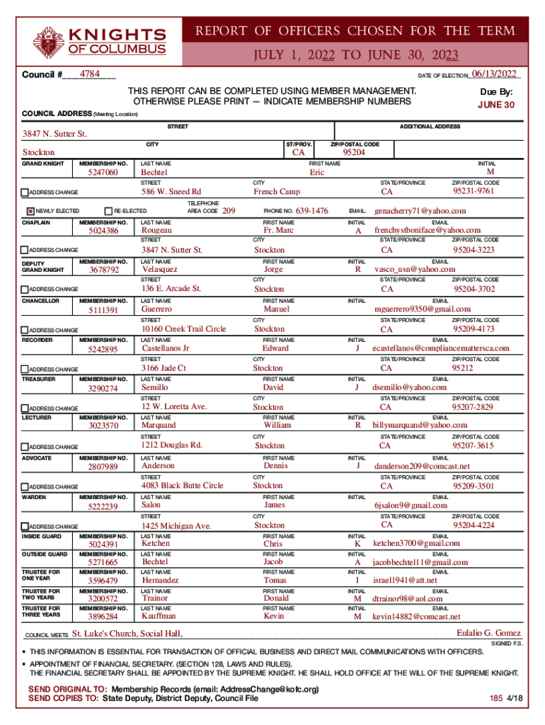 Get the free Report of Officers Chosen for the Term -- Council Form 185