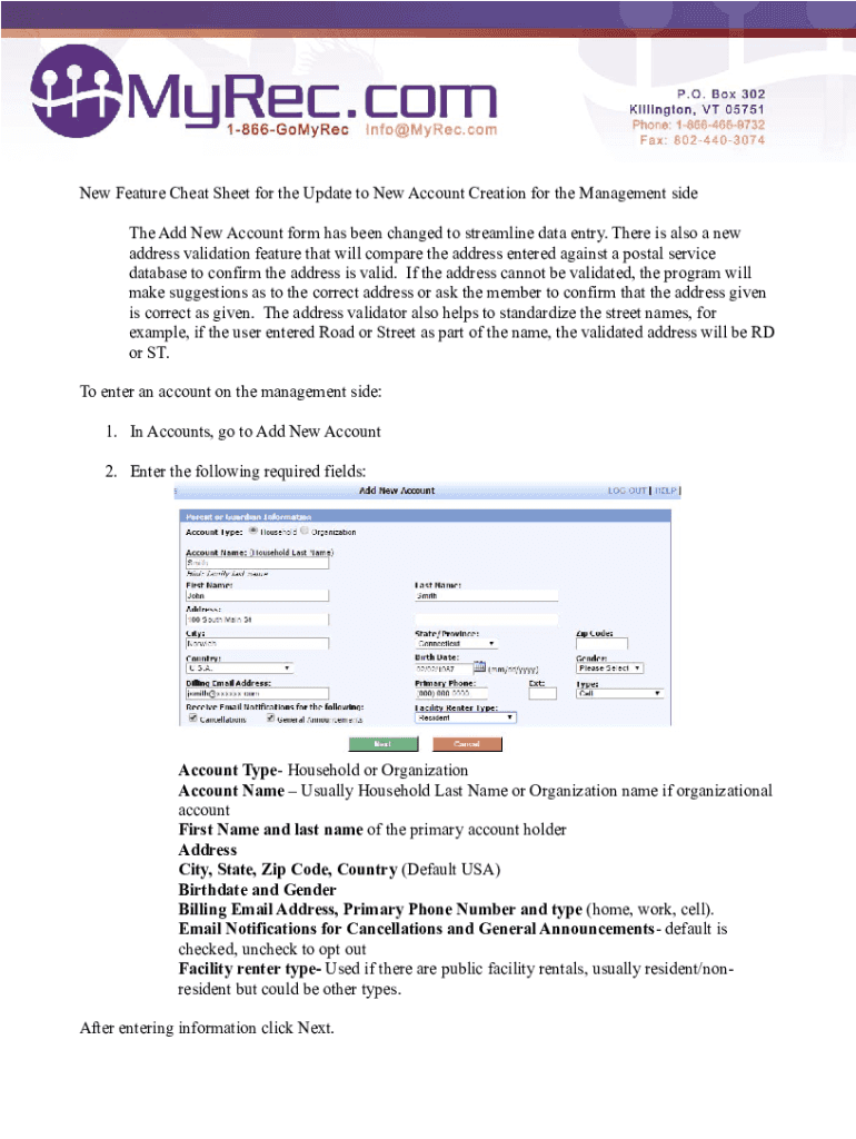 Get the free New Feature Cheat Sheet for updates to Account Creation.docx