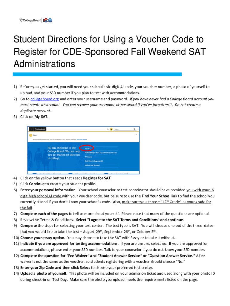 Get the free Using a Voucher for the State Provided SAT - College Board