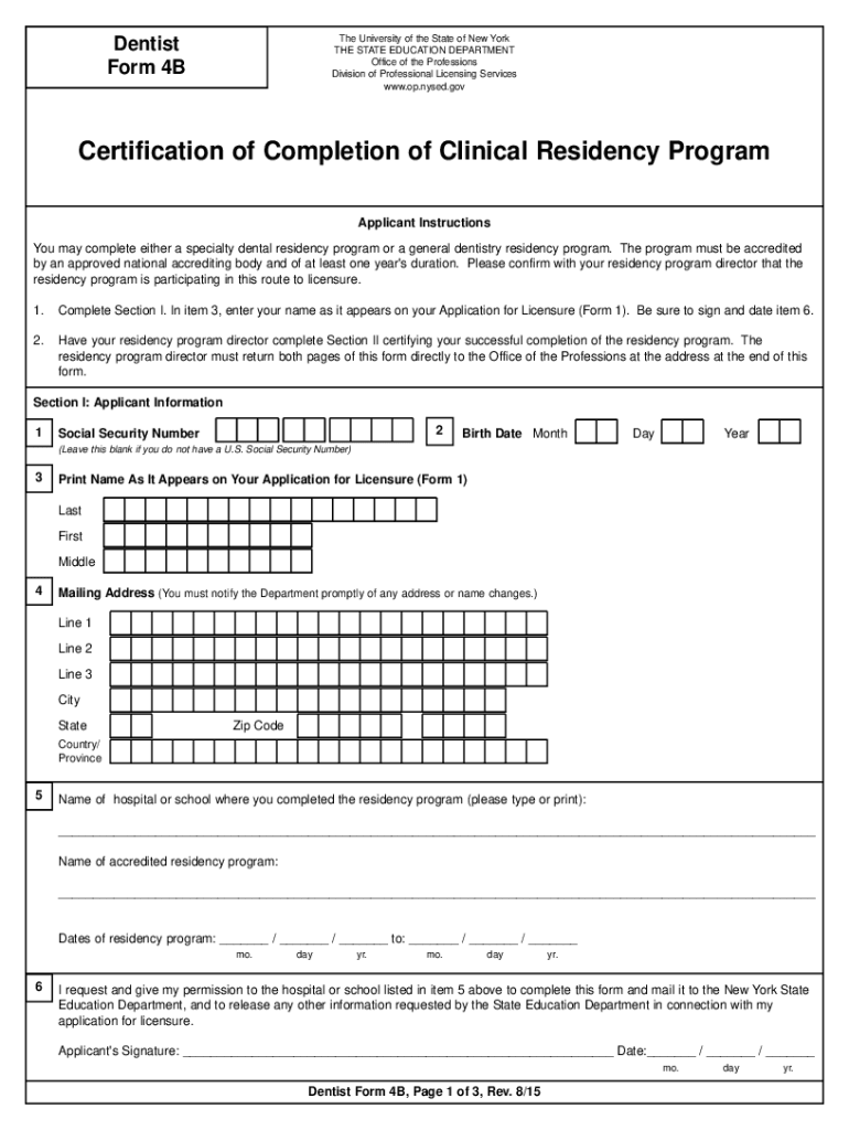 Form 4BCertification of Completion of Clinical