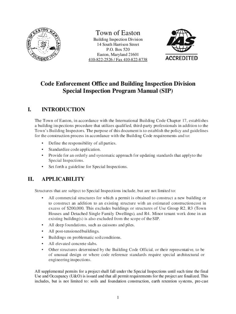Town of Easton Building Inspection Division 14 South Harrison Street P.O. Box 520 Easton, Maryland 21601 4108222526 / Fax 4108228738Code Enforcement Office and Building Inspection Division Special