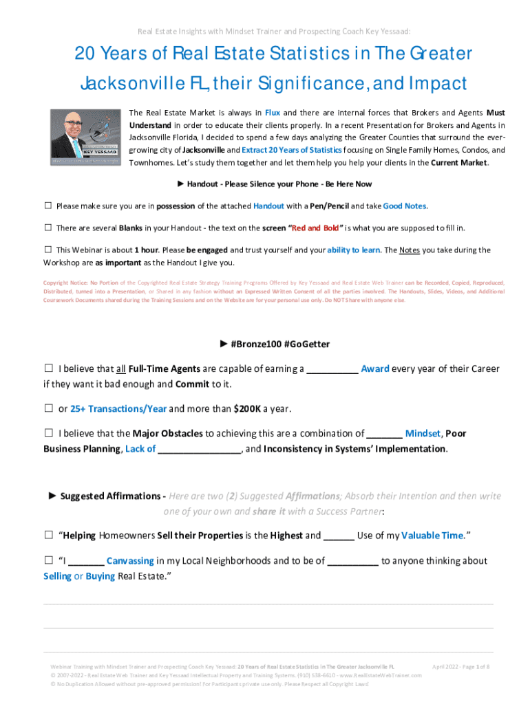 Real Estate Insights with Mindset Trainer and Prospecting Coach Key Yessed:20 Years of Real Estate Statistics in The Greater Jacksonville FL, their Significance, and Impact The Real Estate Market