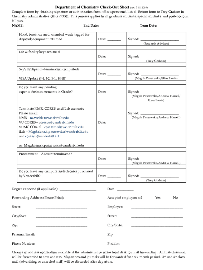 Get the free Department of Chemistry Check-Out Sheet - vanderbilt.edu