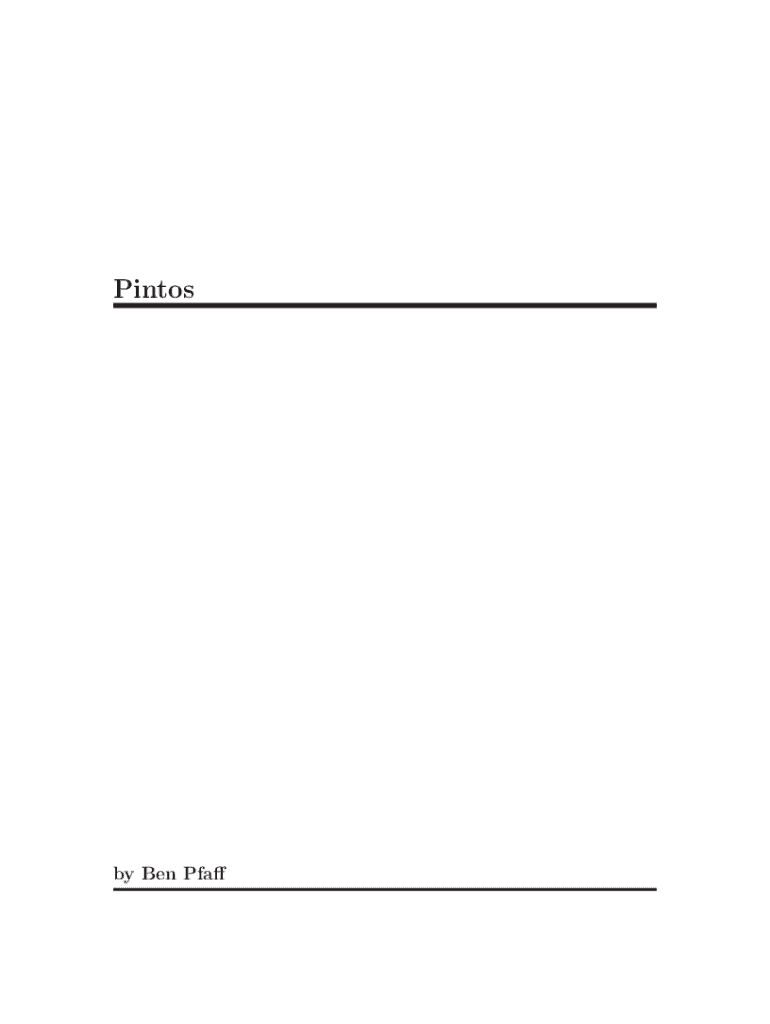 Pintos by Ben PfaffiShort Contents 1 Introduction. . . . . . . . . . . . . . . . . . . . . . . . . . . . . . . . . . . 1 2 Project 1: Threads. . . . . . . . . . . . . . . . . . . . . . . . . . . .
