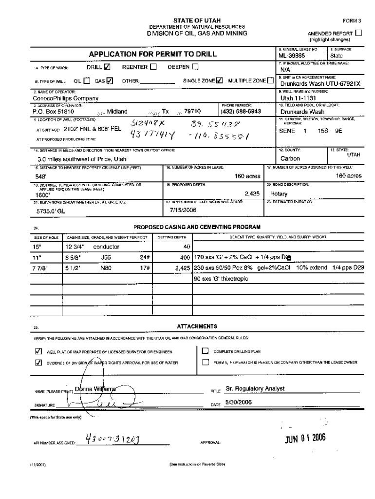 Get the free Online STATE OF UTAH FORM 3 DEPARTMENT OF NATURAL RESOURCES ...