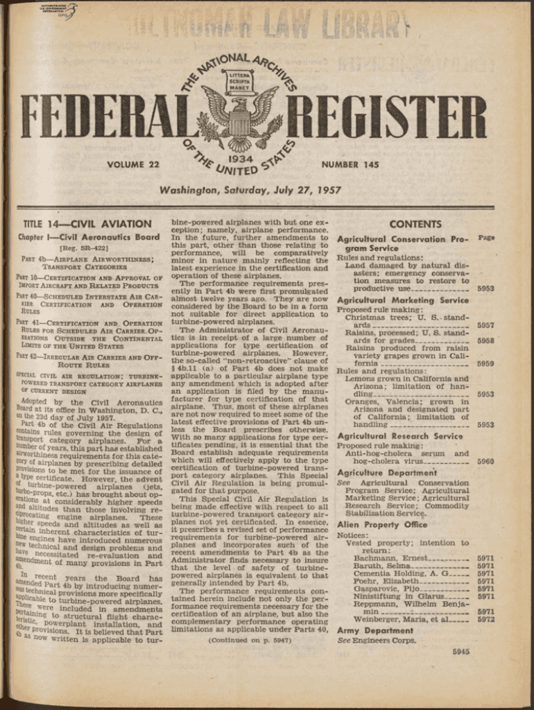 S on a l^cFEDERA1TEDVOLUME 22NUMBER 145 ^ A flt EO Washington, Saturday, July 27, 1957TITLE 14 CIV IL A V IA TO N Chapter I Civil Aeronautics Board [Reg. SR422]Part 4b A IR pl an n e A IR w o r t